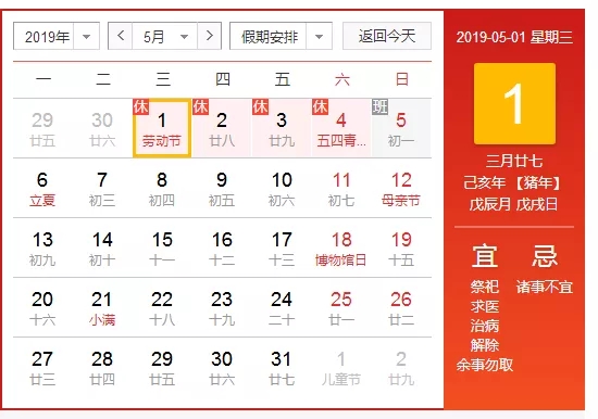 五一劳动节将至,根据《国务院办公厅关于2019年部分节假日安排的通知》及公司具体业务安排,我司现公告如下: