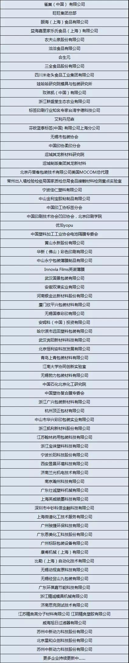 拟邀嘉宾:三全、海底捞、旺旺、雀巢、安姆科、黄山永新、艾利……